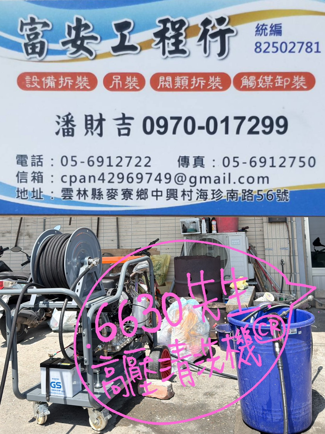 感謝「富安工程行 潘老闆」面交 下訂35HP超高壓水刀清洗機