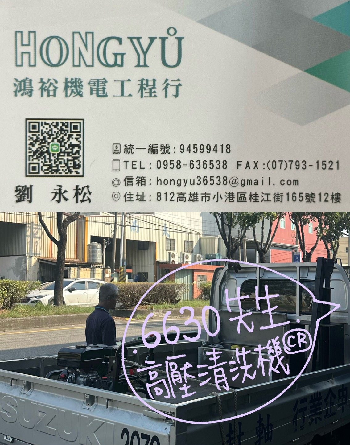 感謝「鴻裕機電工程行 劉老闆」面交 續購 下訂7HP高壓清洗機