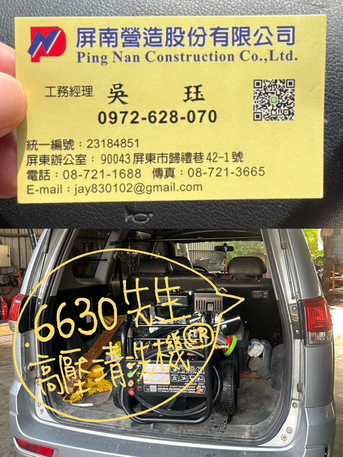 感謝「屏南營造股份有限公司 吳老闆」面交 續購 下訂15HP高壓清洗機