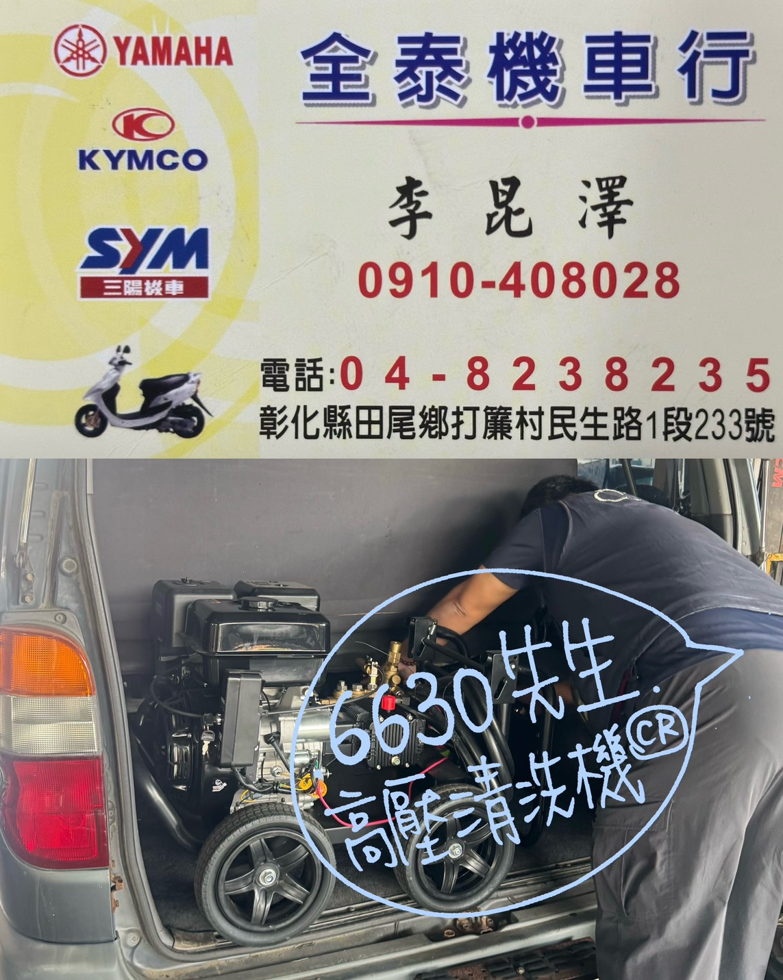 感謝全泰機車行 李老闆支持【高壓清洗機 專業用 清潔設備 買賣維修/6630先生】