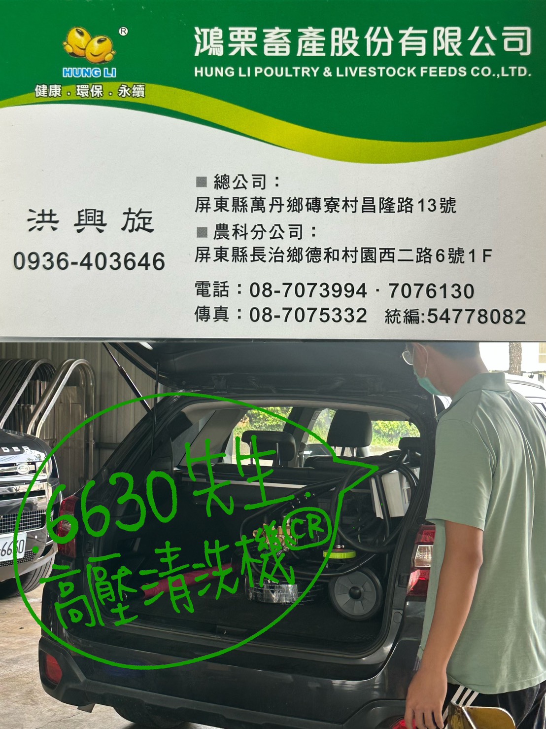 感謝「鴻栗畜產股份有限公司 洪老闆」面交 下訂5HP高壓清洗機