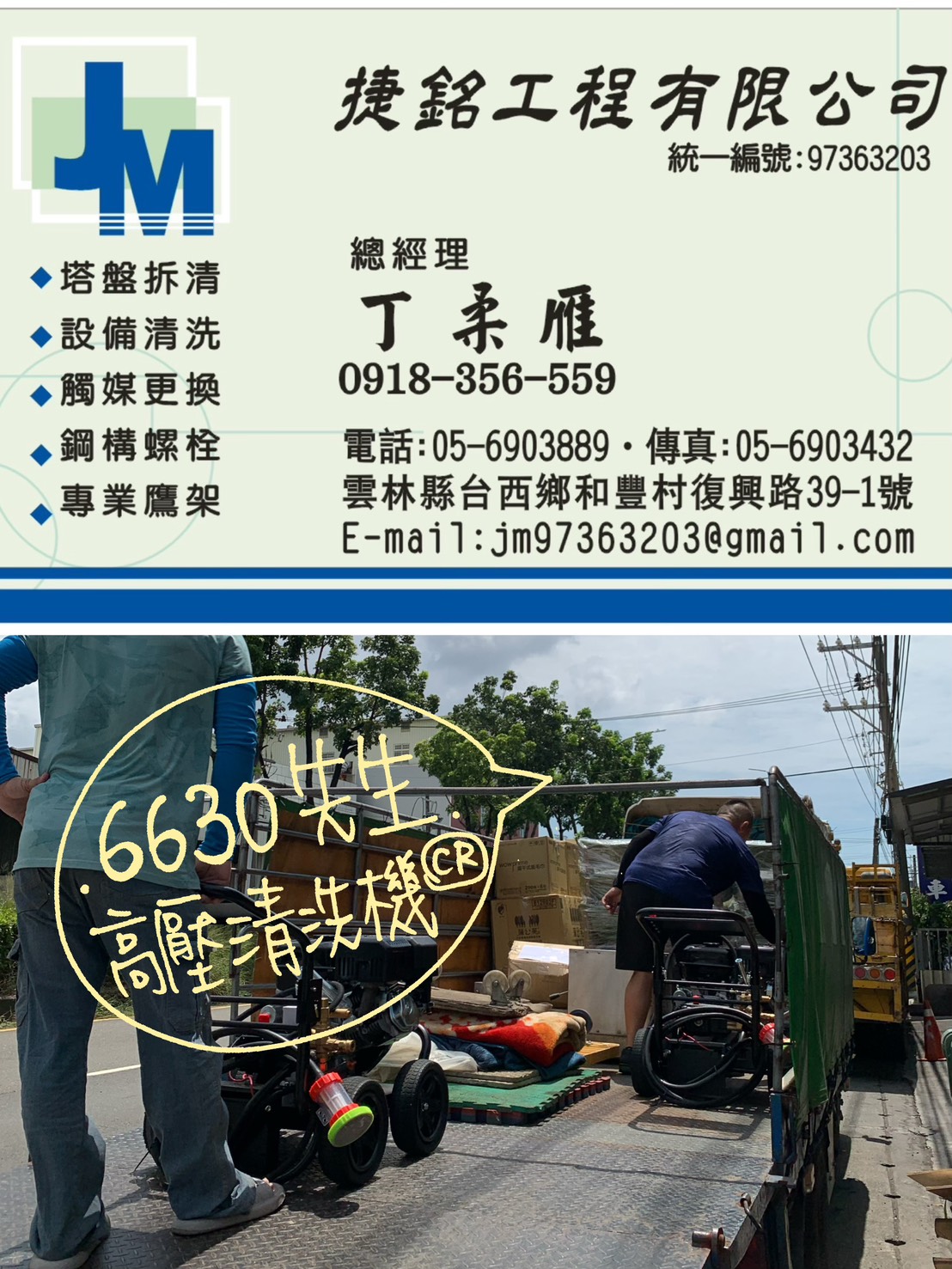 感謝「捷銘工程有限公司 丁老闆」宅配 續購 下訂兩台15HP高壓清洗機