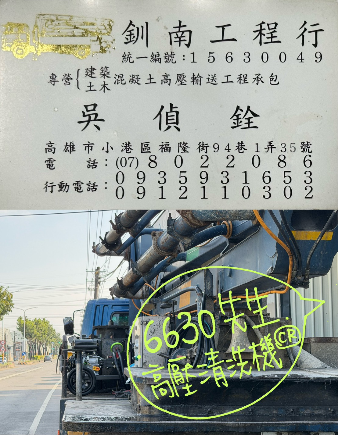 感謝「釧南工程行 吳老闆」面交 下訂7HP高壓清洗機
