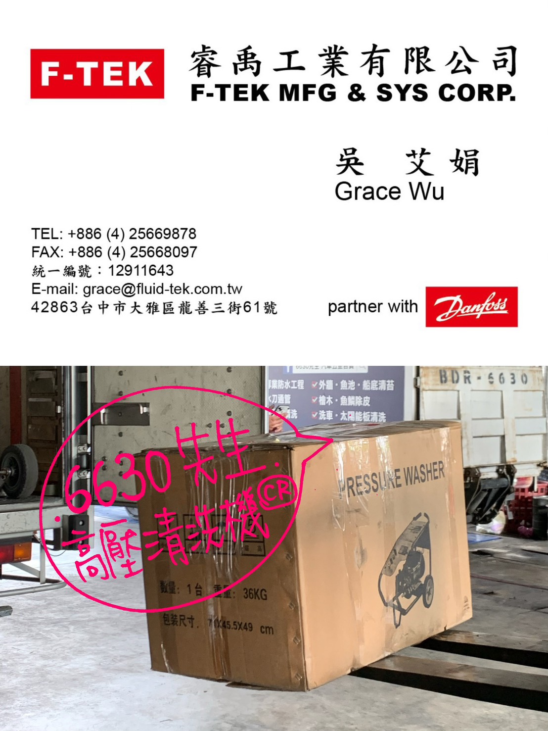 感謝「睿禹工業有限公司」宅配 下訂5HP高壓清洗機