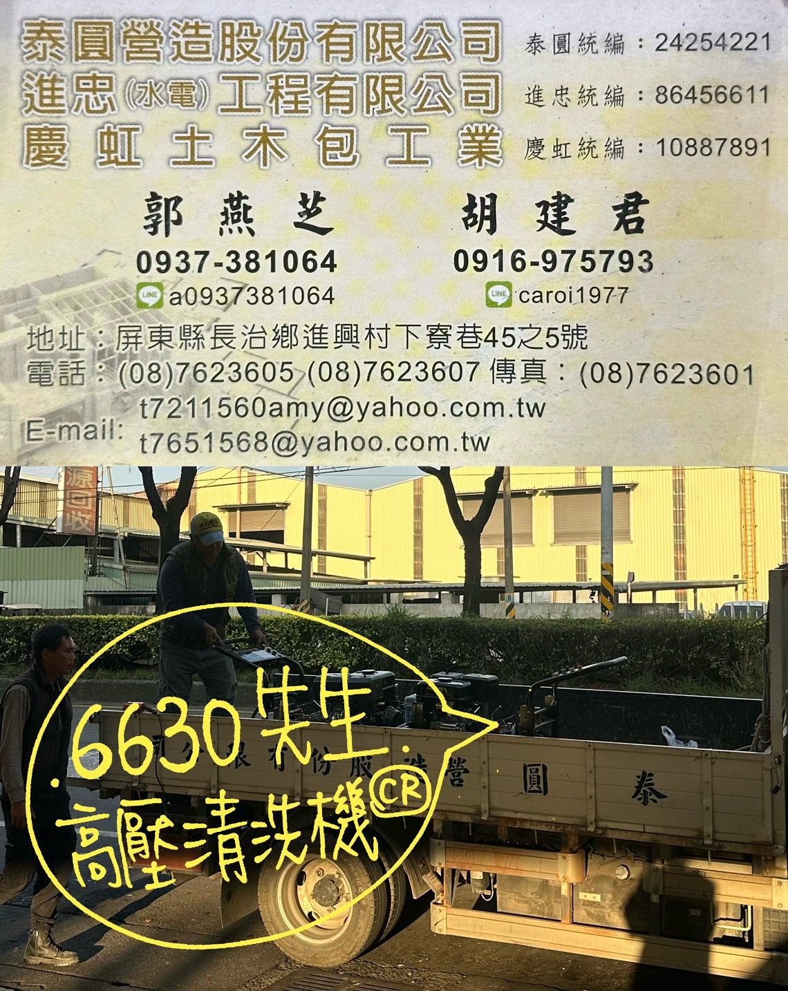 感謝泰圓營造股份有限公司支持【高壓清洗機 專業用 清潔設備 買賣維修/6630先生】