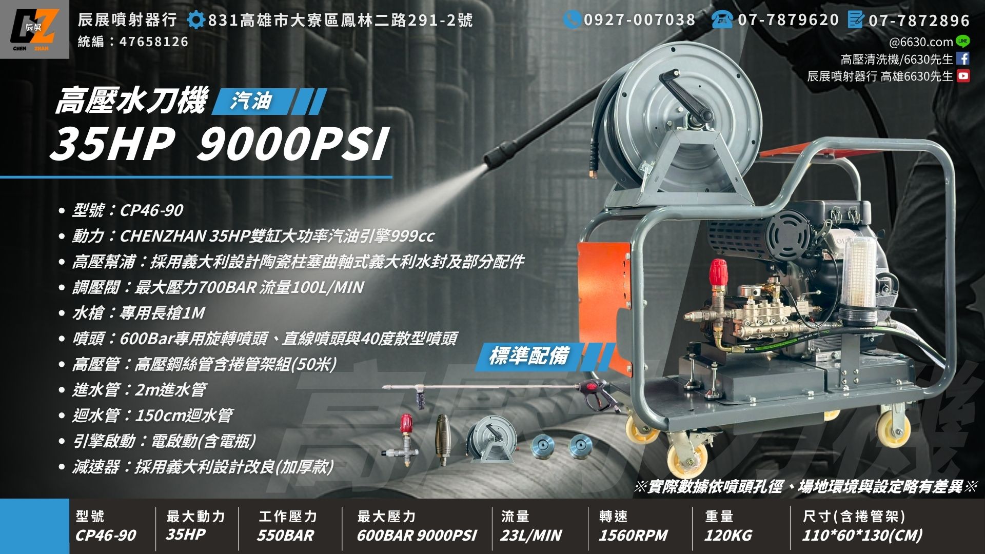 高壓清洗機 工業用(水刀) 35HP 92汽油 9000psi(全配含稅價)
